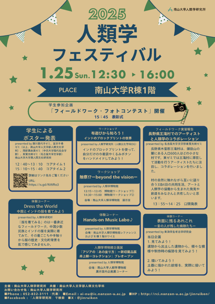 2025年7月25日~28日に実施した「土地と響きあう“粋”なコラボレーション」―文化人類学ゼミ×アーティストの王滝村探検」に参加した、文化人類学ゼミ学生によるポスター発表が行われました。ポスターを本サイトでも公開します。